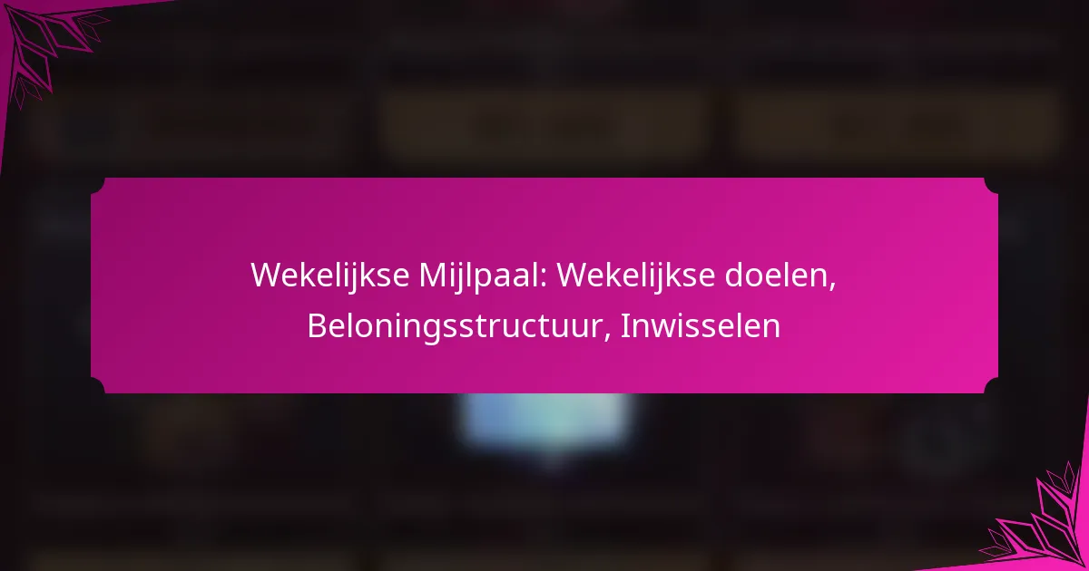 Wekelijkse mijlpalen zijn gestructureerde doelstellingen die spelers gedurende een week kunnen voltooien. Ze dienen als een kader voor de gameplay, waarbij ze spelers begeleiden naar specifieke prestaties die bijdragen aan hun algehele voortgang in het spel.
